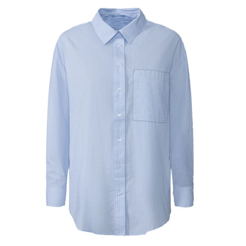 ناموجودشومیز لینن باکسی آبی راه راه زارا
