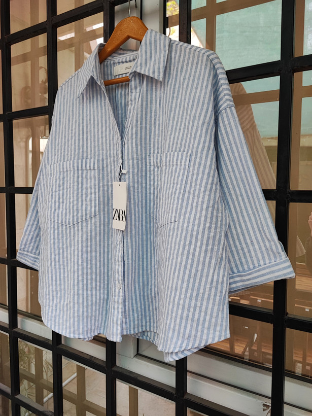 شومیز پرطرفدار و ترند آبی راه راه برند زارا